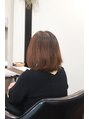 レザーとハサミでカットして収まるようにしています。バックの重たい所は、しっかりすいています。イルミナカラーでスターダスト(シルバーグレー)のグレイカラーでしています。ボンドのトリートメントもしています。ツヤとふんわり感が出ています。