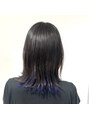 インナーカラーで遊んでます!ブリーチ回数は3回以上!インナー以外は地毛で黒です!内側にホワイトをのせ、毛先はブルーに。★