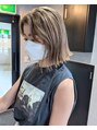 ブリーチ2回以上必須のハイトーンカラーです。オリーブベージュ系カラーでカジュアルに☆