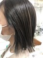 切りっぱなしボブに相性抜群のインナーカラー^^濃いめのグレーを入れて退色過程も楽しめるようにしています。仕上げはストレートアイロンで軽く外ハネにして重ためのオイルでスタイリングしてます。