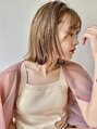 シースルーバングと顔まわりのカットで定番だけど今っぽいボブ。頭の形に似合う長さでカットします。結んだ時にもちょっと後れ毛を出せるとアレンジの幅が広がります。カラーは1ブリーチで赤味の少ないシルバーベージュで透明感を。