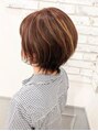 細ハイライトが入った王道ブラウンカラーにくびれ感のあるショートボブスタイルでナチュラルなヘアスタイルに♪