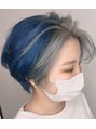 フェイスフレーミング。ブルー×シルバーアルカリカラーのみ。デザインカラー楽しましょう!施術時間はブリーチの回数によります。カラー楽しみましょう。