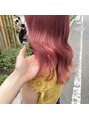 ブリーチ一回でできるピンク系のカラー。履歴が複雑だったり、多少の残留などがあっても比較的やりやすいです。カットは少しだけレイヤーを入れてワンカールでも束感が出やすいようにしています。