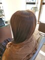 【カラー】の施術です。ハイライトの残っている表面も黄色が強く出ていたのでアッシュ系の色にちょびっとピンク系を混ぜてハイライトおさえつつ全体に落ち着いたカラーを入れました。ピンクの効果で少しハイライトが綺麗に見えるのも特徴です。