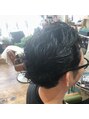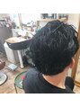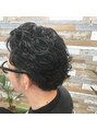 カット、パーマ。メンズスタイル。ツーブロック×パーマ。2回転ぐらいのクルクルパーマ。メンズも艶髪。色気もいい感じ☆