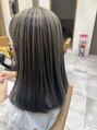 ハイライトを全体的に入れて、セージグリーンカラーをのせました!!色落ちも、とても透明感と優しい色味のカラーです☆白髪ぼかしにも最適です!