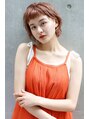 夏のウェーブショートバング!パーマをしてもよしブリーチカラーで暖色カラーもよし!夏の可愛いサーモンベージュ
