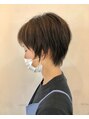 スッキリショートスタイル!耳にかけてもかけなくてもスッキリするのでおススメです。カラーはやや明るめのグリーンベージュで柔らかく◎