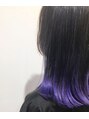 毛先をブリーチし、バイオレット系で仕上げました。一回ブリーチしておけば、色落ちしてからもいろいろなカラーでオシャレが楽しめますよ!