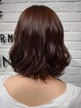 肩につくくらいのボブスタイルです。毛先を外ハネにスタイリングし、全体的に動きのあるエアリーな仕上がりになるように束感を残しつつ軽めにしています。カラーはグレーベージュで柔らかな印象にしました。