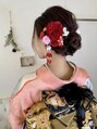 低めアップのお団子風アップスタイル☆後ろでまとめて三つ編みを崩しながら丸めました♪訪問着にも使え落ち着いた和装アップスタイルです