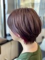 耳かけショートスタイルにベースはピンクベージュ、イヤリングカラーでビビットピンクを入れました。眉毛もピンクに♪根元4センチ以外はブリーチのベースです。
