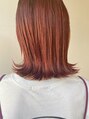 プツっと切りっぱなしのボブ◯カットラインを残しつつスタイリングした時に毛先のニュアンスが出るように。カラーは深みのあるチェリーレッド*