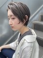シースルーバングをかきあげてアレンジした、大人かわいい前下がりのハンサムショートはシャープに切ったライン、襟足をしめてスッキリ見せたりと、メリハリを効かせて絶妙なバランスに!カラーはピンクブラウンでつや感、質感をプラスして大人見えに!