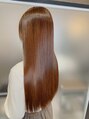 印象や顔色が明るく見えるアプリコットブラウンです♪髪質改善トリートメントで完璧な艶も実現しております☆しっかりとケアをしてあげると、ロングヘアでも素晴らしい艶が出ます♪