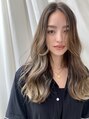 ハイライトで外国人風のデザインカラー☆センターパートで大人の色気のあるヘアスタイルに♪伸びても根元のリタッチが目立ちにくいです!髪に負担をかけずにデザインします!