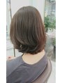 肩ラインぎりぎりのミディアム。毛先の動きもアレンジしやすく、鎖骨ラインより短くしたいけど勇気が出ない方でもチャレンジしやすい、優秀スタイル。8トーンのミルキーグレージュは柔らかさと軽さを印象づけてくれます。