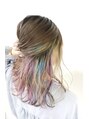 インナーカラーにユニコーンカラーをしています♪派手に見えないデザインですのでオススメです。インナーカラー以外にハイライトをオンすると一層動きがみえて可愛くなります。