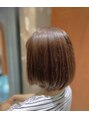 アゴ下ラインのボブにトリートメント効果の高い縮毛矯正をかけてクセとダメージをケアします。お好みでカラーも重ねると一層ツヤ感が出ます。クセの強い方は縮毛矯正、弱い方はトリートメントだけでもサラッとまとまります。