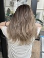 巻き髪/バレイヤージュ/ハイライト/ローライト/グラデーション/ミディアム/セミロング/アッシュ/ベージュ/アッシュベージュ/ミルクティーベージュ/ミルクティーアッシュ/ブリーチ/リエンス/RIENS/シャドールーツ/岡山美容院