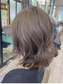 透明感たっぷりのグレージュカラーにくびれ感のあるボブスタイルで大人可愛いヘアに♪