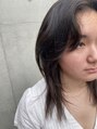 目元の位置に合わせて高めに段を設定したスリークなミディアムスタイル。前髪から広がるサイドパートでより柔らかい質感を出しました。