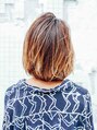 カラーリングは根元からのグラデーションでグランジ感を出し可愛らしいボブのスタイルをハンサムな印象に!表面には動きが出るようレイヤーを入れ軽さを出しました。スタイリングはウエットで顔周りはかきあげました。