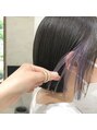 インナーカラー×ミニボブインナー部分は2回ほどブリーチをして、淡いラベンダーを入れてます!表面は黒に近いダークアッシュにする事でインナーとのコントラストをつけて暗髪でもお洒落に見えるよう仕上げてます!