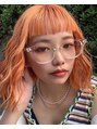前髪ぱっつんボブ。カラーはオレンジのハイトーンで夏らしさを