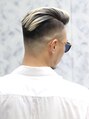 男らしく高めに設定した刈り上げと、大人な雰囲気を醸し出すかき上げセットで色気のある外国人風スタイルを表現!プラスでカラーやブリーチする事により圧倒存在感を演出します!