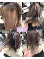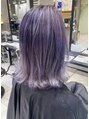 2ヶ月前にハイライトバレイヤージュブリーチを活かし1回でできるカラー。ハイライトも残しながら青みが強いバイオレット!切りっぱなしボブは、動くたびに揺れる毛先はおしゃれな雰囲気です。軽さと重さを同時に楽しめるバイオレットカラーオススメです!