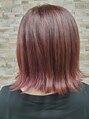 インナーにブリーチ後バイオレットのカラーを入れ全体もバイオレット系のカラーを入れ明るさでコントラストをつけた。切りっぱなしボブなのでドライだけでもOKの簡単スタイリング☆