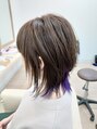肩上あたりの長さで、アンダーセクションにコンケープハイレイヤー、トップセクションにラウンドレイヤー&コンケープレイヤーを入れてより軽さと動きの出るウルフレイヤースタイルとなっております☆アンダーセクションにインナーカラーのオーキッドを☆