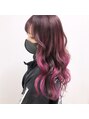 暗めのピンクブパープルのベースに、ベリーピンクのハイライトを入れているデザインカラー☆ハイライトの部分はブリーチ必須です。色味や、ハイライトの太さは調整できるので、やってみたい方ぜひご相談ください!