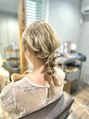 カジュアルなルーズ感を出して編みおろししました。紐も使ってリボンアレンジ。結婚式に出席するにも、お出かけにもみんなの目を引くこと間違いなしです!