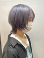 顔周りに長さを残した中性ウルフカラーは色落ちも意識したパープルシルバーカラー!学割U24 メンズ センターパート 韓国 ウルフカット ツイストスパイラル ツイストパーマ 髪質改善 インナーカラー ハイライト イヤリングカラー ダブルカラー