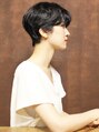 クセ毛のようなパーマをかけカジュアルショートヘア。クールになりすぎないように毛先を遊ばせ、後頭部に丸みをつけて女性らしさもプラス。襟足はタイトにしつつ毛先の柔らかさも残して首元を綺麗に見せます。
