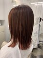 ピンクブラウンでカラーリングした外ハネスタイル。ハイライトを入れる事で程よいコントラストがつきます。