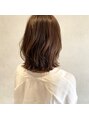 肩にさしかかってハネはじめる長さのミディアムボブに、表面に薄くレイヤーを入れてふんわり感をプラスしました。くすみ感をほどよく調整したモノトーングレージュで退色と黄味の出やすさをコントロールしてます。