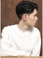 ベースは前髪長めのツーブロックの髪型。パーマをゆるくかけてトップのボリュームと毛流れを作る事でハチの膨らみを解消しています。ツーブロック部分にグラデーションをつける事で伸びてきても気になりにくくした30代40代の方にもオススメの大人の髪型です。