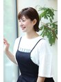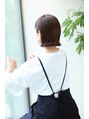 切りっぱなしボブに軽さを出すために毛量と質感調整をしています。
