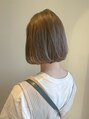 パツっとさせたボブに、ハイライトをいれてベージュ系カラーで柔らかさを出しています(^^)仕上げはオイル。付けてストレートアイロンでナチュラルに内巻きに仕上げています!シンプルだけどめちゃくちゃ可愛いボブスタイルです☆