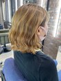 肩ラインのボブスタイル。カラーは1ブリーチのハイトーンベージュです。