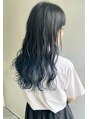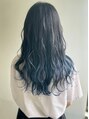根元はブルーブラックで中間から毛先にかけてアイスブルーのグラデーション施したおすすめカラーです☆中間から毛先にかけてランダム入れられた透明感のあるブルーがより立体感のあるスタイルに☆ウェーブで巻くことで柔らかい雰囲気の外国人風カラー