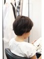 小学生のお客様です。ヘアドネーションのお手伝いをさせて頂きました。31cm~33cm位をカットさせてもらいました。髪をゴムでくくって、カットしてお客様に渡しています。スッキリとショートにさせてもらいました。
