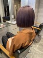 全体をケアブリーチで脱色してからアルティストカラーのアイリスバイオレットをオンカラーしてます。カットはアゴラインで切りっぱなしのミニボブ、色落ちも綺麗なのでおすすめです◎【髪質改善/カラー/ヘッドスパ/トリートメント/アルティスト/ultist】