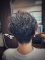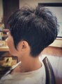 女性らしいラインも残して甘辛ミックスアシメショート☆右サイドは前下がりに長め、左サイドはハチ下長めの刈り上げのショートスタイル。トップに根元がフワッとなるように酸性パーマでワックスなしでも乾かしただけでスタイルが決まります♪