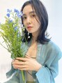 前髪長めのミディアムスタイル。暗髪を活かしてツヤ感のある仕上げにしました。