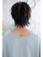 前髪~耳後ろまでマッシュラインで切り込み、長めに残した襟足とつなげることで、カッコカワイイマッシュウルフに。レイヤーを入れてしっかり束感を出すことで、動きとメリハリあるスタイルに。デコ出しフォルムで精悍な表情に仕上げて、男らしさも格上げ!
